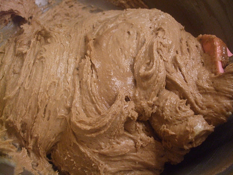 Add the eggs to the mixture and combine; it may look split, don't worry, once you get the flour combined it will look fine. The add the cocoa powder, vanilla and then fold the flour in using a metal spoon. Add the salt and then fold in the hot water.